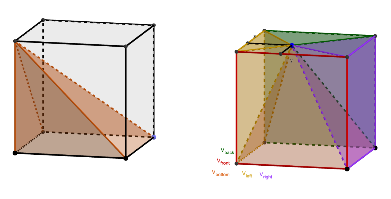 This can be generalized to a pyramid based on any prism, where the top point lies in the plane of one of the bases. However, this is beyond the scope of this post.
