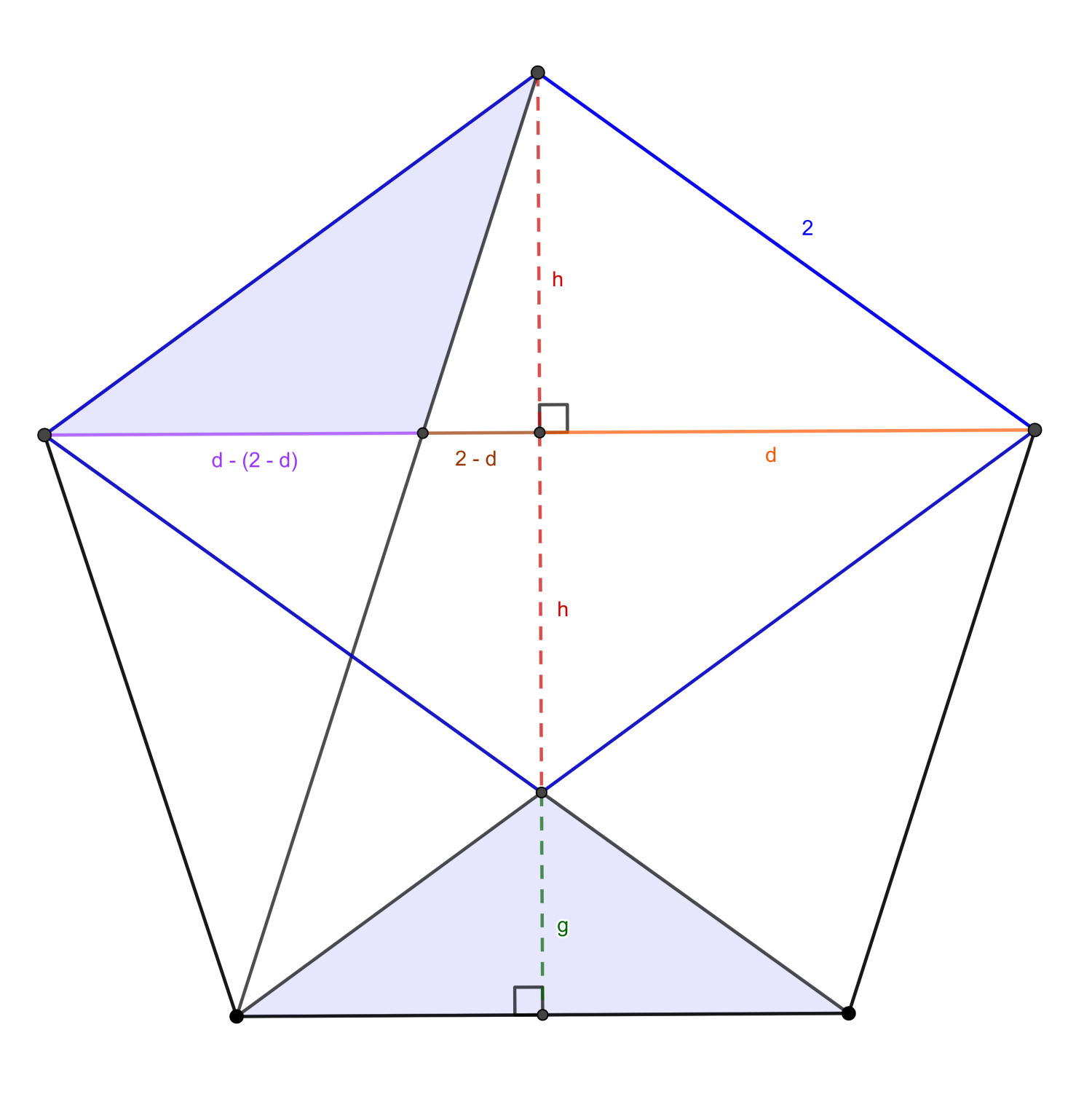 Notice that the center of a pentagram contains a regular pentagon. This means that the ratio of its height to the side is equal to the ratio of the larger pentagon’s height to its side. This gives us enough information to deduce d: