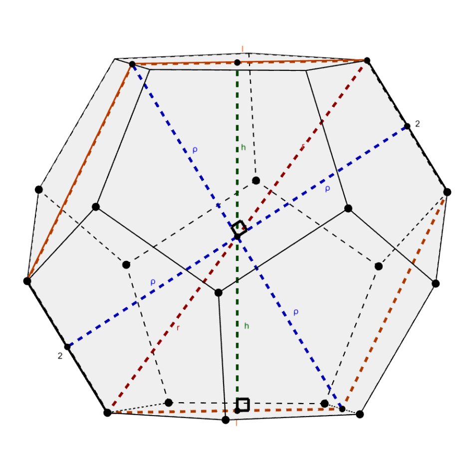 With the diagonal length and apothem of a regular pentagon in tow, the geometry of the final two solids may be explored.