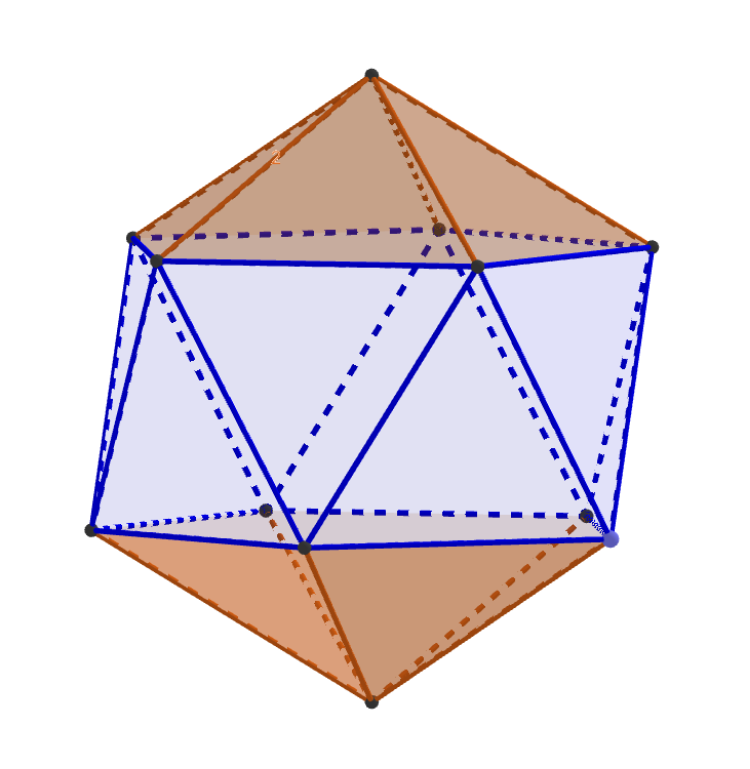 I tried to use as much coordinate-free geometry as I could in producing these diagrams. GeoGebra lacks a tool for producing Platonic solids other than cubes and tetrahedra, so I ended up cheating in coordinates for the octahedron and icosahedron diagrams.