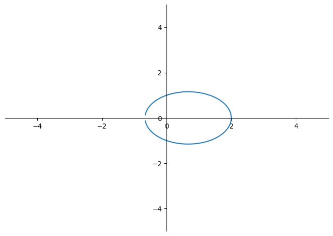 As evidenced by the bound on the eccentricity above, hyperbolae are in some way the inverses of ellipses. Since o_1(2) is a reflection of o_1(1/2), you might think the implicit equation for \varepsilon = 2 to be the same, but with a flipped sign or two. Unfortunately, you’d be wrong.